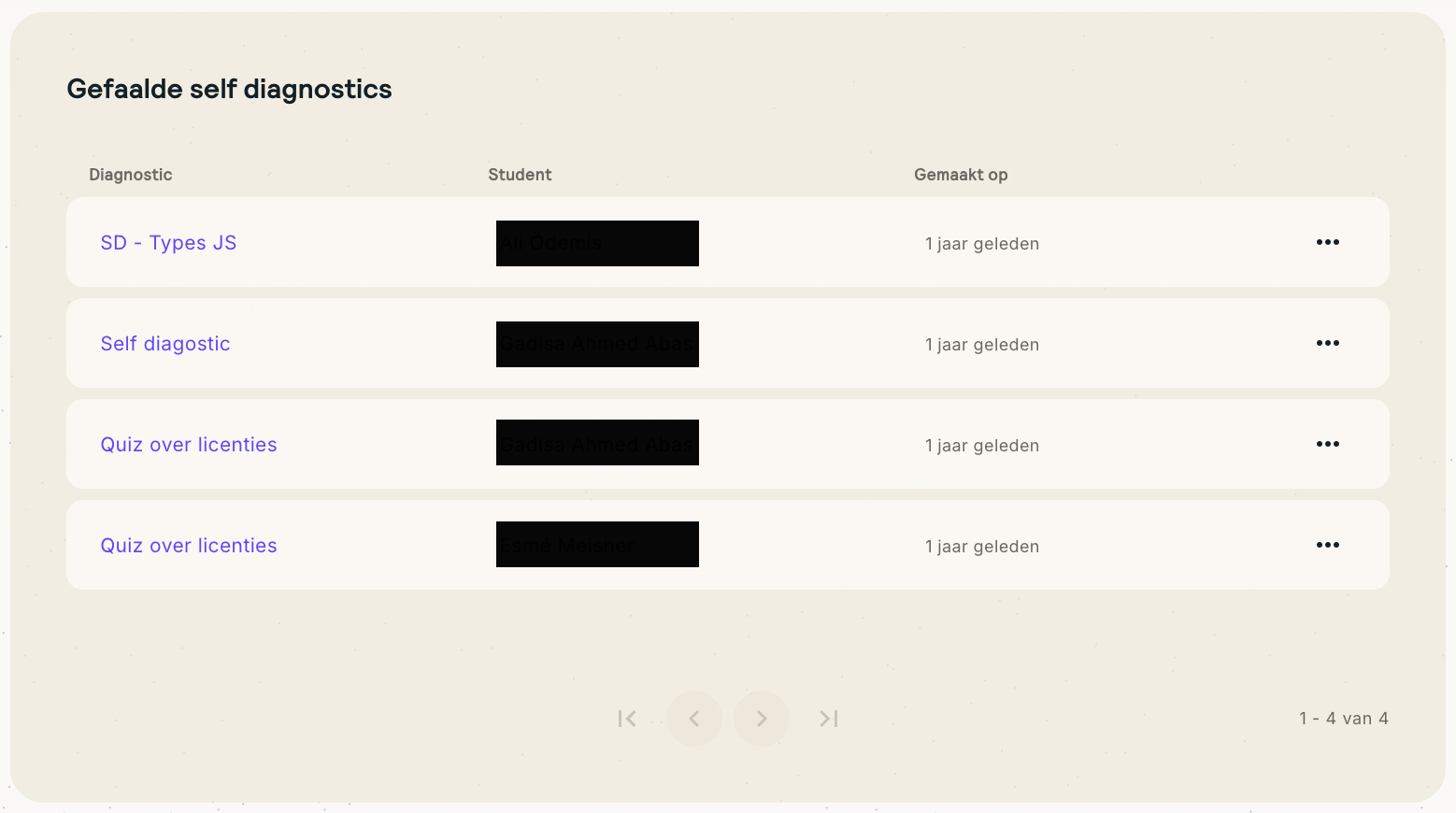 Gefaalde self diagnosticstegel ziet. - Klik bij een van de studenten op en kies de gewenste optie: