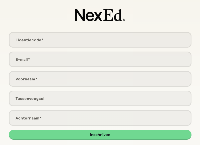 Docenten kunnen zonder licentie gebruik maken van NexEd en hebben dus geen licentiecode nodig. Heb je als docent nog geen account? Dan kan jouw opdrachtgever of locatie administrator een account aanmaken voor je.