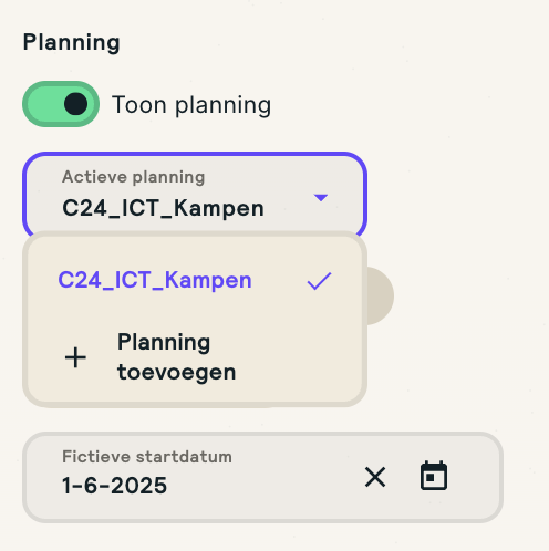 Actieve planningen klik op+ Planning toevoegen. - Als je meerdere planningen hebt kun je de switch