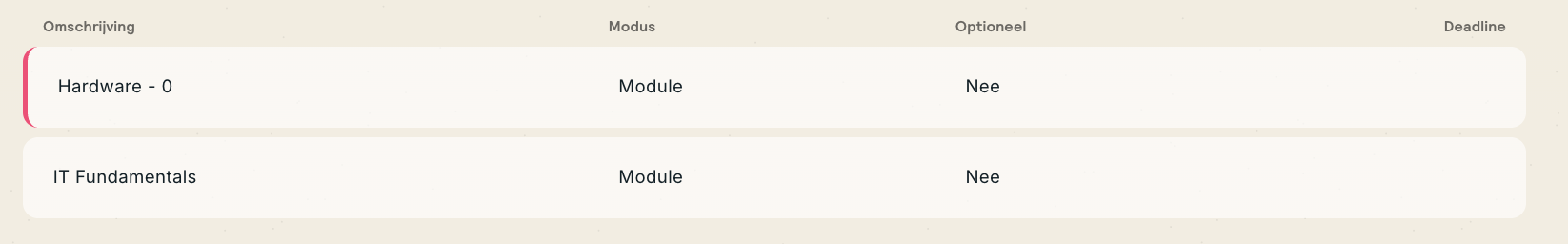 Als een students groep verbonden is met het competentieprofiel, kan hij/zij de gemaakte planning inzien. De absolute deadlines zijn uitgerekend op basis van de students startdatum en het weeknummer van de deadline.