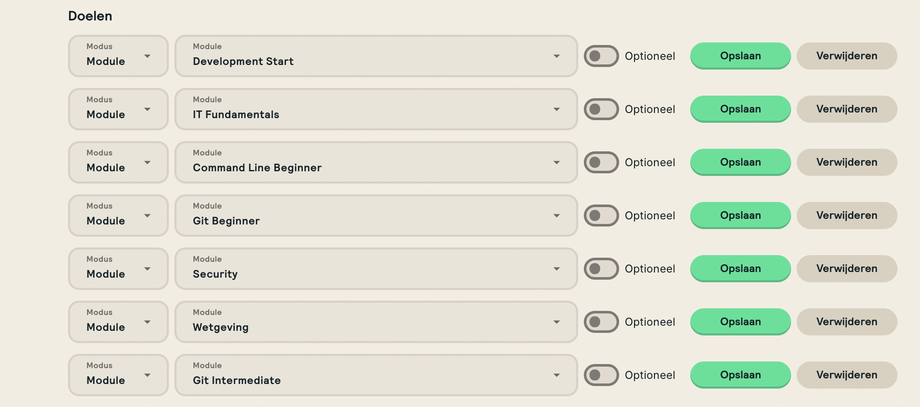 - Een module wordt als doel automatisch afgevinkt zodra een student de module afrondt.