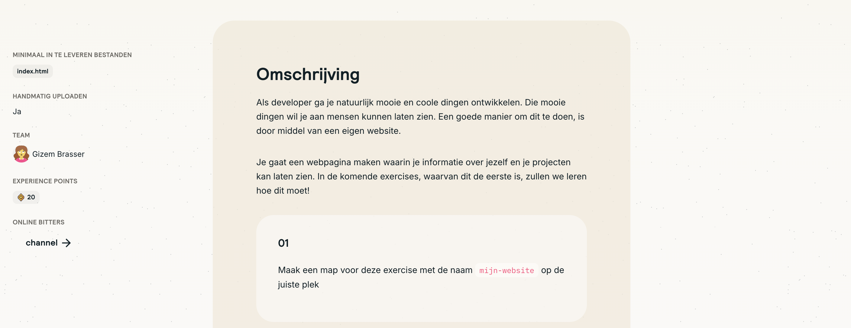 | Minimaal in te leveren bestanden | Je moet minstens deze bestanden inleveren om de exercise te kunnen afronden. |