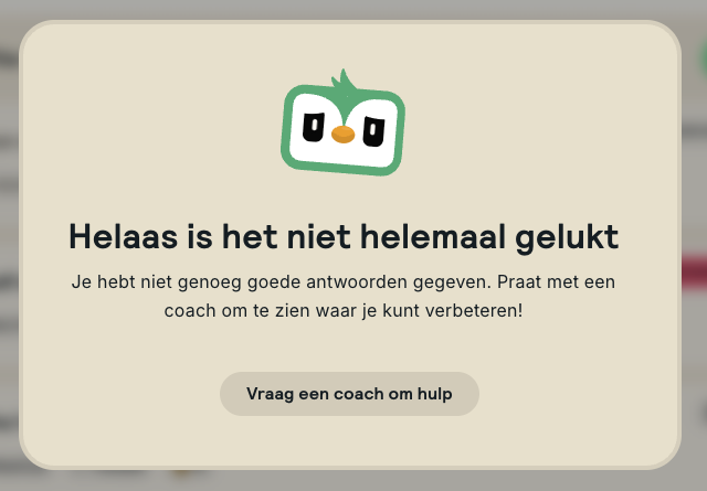 | Gesloten | Deze exercise is nog niet beschikbaar. | De voorafgaande exercises zijn nog niet afgerond. | Rond voorgaande exercises af om de exercise te openen. |