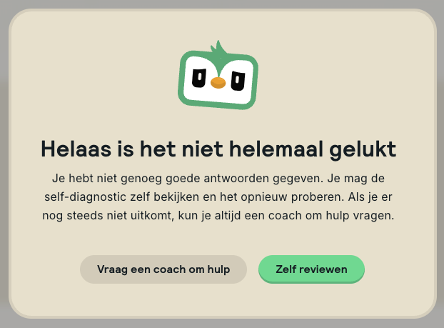 Als deze optie aanstaat, kan je de Self diagnostic zelf nakijken. Je kan dit doen door in de dialoogoptie na het afronden van je Self diagnostic te kiezen voor de optie Zelf reviewen.