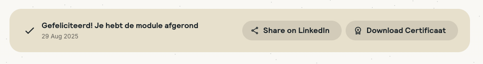 | Afgerond | Je hebt de module afgerond en kan met de volgende starten. | ![]() |