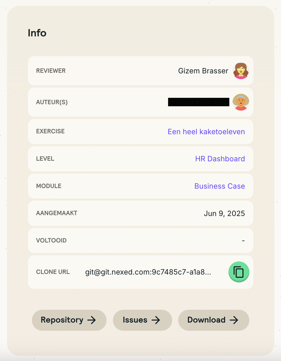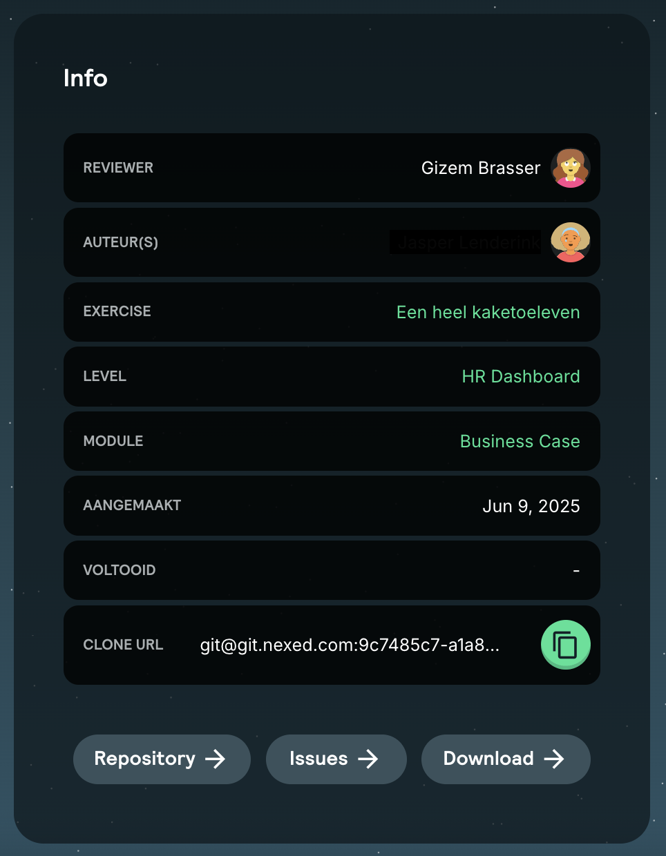 Hier zie je algemene informatie zoals de auteur van de exercise en de module.