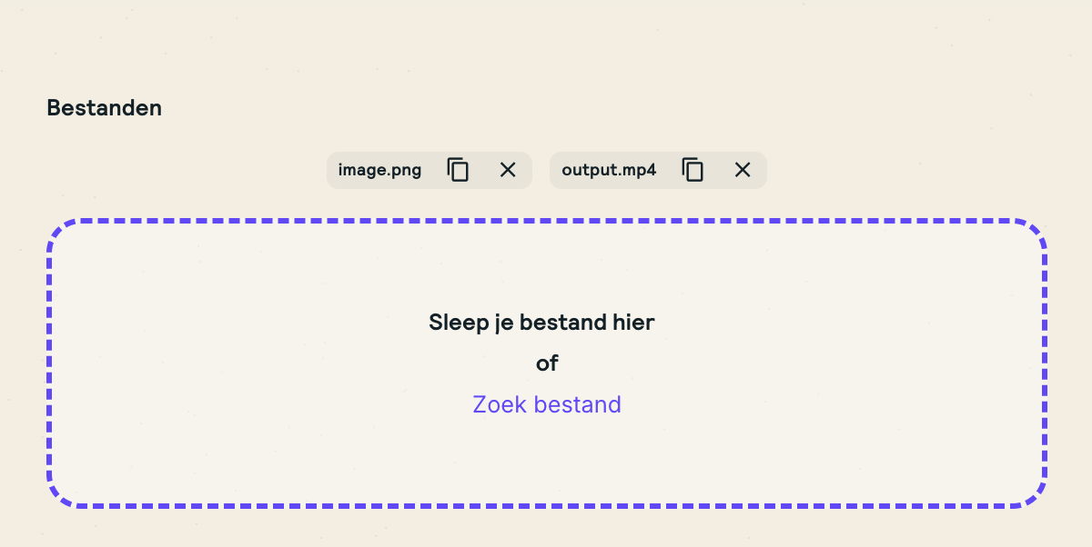 Bij zowel theorie als praktijk exercises kun je afbeeldingen, GIF's of video's uploaden om te gebruiken in een exercise. Helemaal onderaan de Exercise Editor kun je bestanden slepen of zoeken op je computer: