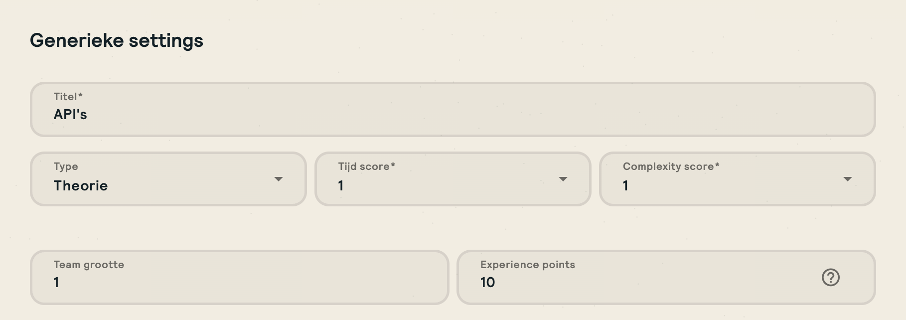 Experience points: Geeft aan hoeveel experience points het afronden van de exercise oplevert.