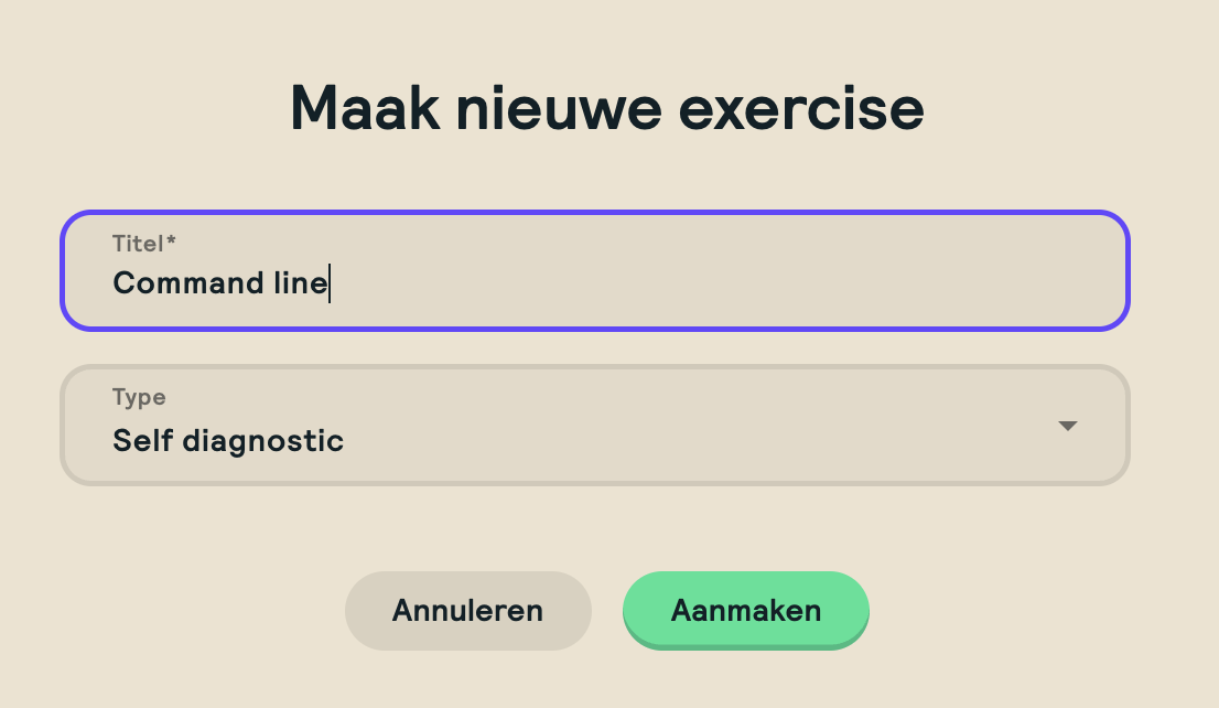 Self diagnosticals type. - Geef in het venster de exercise een titel.