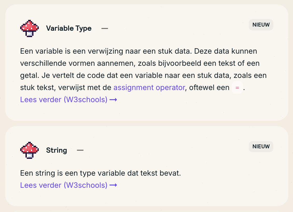 - Een of meerdere links naar een externe bron 1 waar de student meer informatie kan vinden over deze techniek.