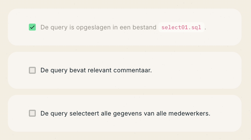 Let erop dat de verwachte uitkomst niet al de uitwerking van de exercise weggeeft!